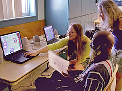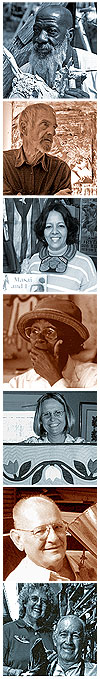 Each artist is visited by the Folkvine group and interviewed, often more than once. They introduce us to their work, their lives, and their communities. Later, we devise a web site that we hope not only depicts the work of each artist, but also looks, feels, and sounds like an analogy for each artist, their life story and the story of their work and community. Before the web page is posted to the public, we hold an event within the artist's community (see the Communities page for more information) in which we celebrate the artist's work and receive feedback on the new web site. After revisions, the page is posted—these are what you see in the Artists section of this site. By using interactivity and linking the sites to the artists' aesthetic sensibilities, we seek to present models for online scholarship, ethnographic internet design, and the pleasures of the web.